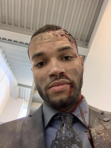 I was Hired as a Stunt Actor by Mr. Nick Marinos to execute an Acting scene leading into a Deadman fall from the top of 25 Steps in a narrow hallway. The instructions from the Director were not to bounce off the rails and splat my head onto the wall at the bottom of the steps. Safe to say it went well and the Producer wanted a photo. This was my 3rd Union credit. Thank again Team.