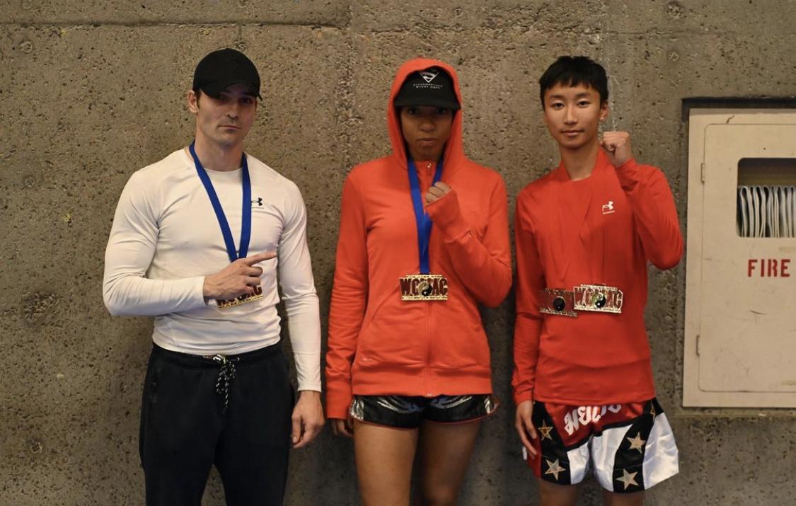 On the left is Andrew Hutchinson, my trainer, and on the right is my sparring partner, Alex Nguyen. Academy: Freestyle Martial Arts (Coquitlam)