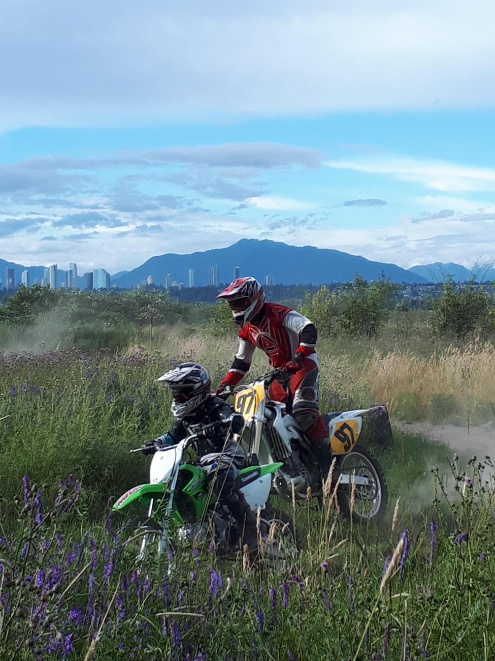 Launching the PW50 at the RISK Moto Track with Bill and Lars. Summer of 2018