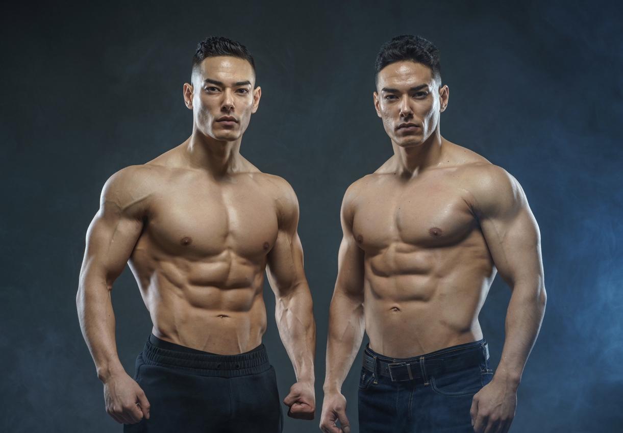 Identical twin, single digit body fat % all year round. Consistent training regimen with no off season.